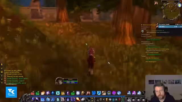 00:34:32Es zeigt sich ein Problem bei der Gruppenfindung für Maraudon. Viele Tanks machen den Questrun aus Zeitgründen nur ungerne doppelt. Zudem stellt der Streamer fest, dass sein Schadensausstattung als Heiler nicht mehr optimal ist und er daher Dual-Spec nutzen müsste. Der Zusammenschluss der Gruppe gestaltet sich dadurch schwieriger als zunächst geplant.