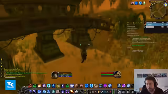 06:14:36Nach gescheiterten Versuchen, den Aufseher in Scholomance zu besiegen, wendet sich die Gruppe dem Tempel von Atal'Hakkar zu. Es wird eine strategische Sitzung einberufen, um den Run zu planen, wobei die besonderen Fähigkeiten des Endbosses – der den Tank in die Felsform bannt – diskutiert werden. Die Teilnehmer überlegen, wie sie diese Mechanik meistern können, und organisieren sich auf dem Weg zum Tempel. Die Gruppe besteht aus drei Mages, einem Tank namens Leon und weiteren Spielern, die sich spontan angeschlossen haben, um die Quest gemeinsam zu bewältigen.