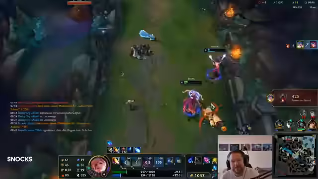 04:17:42Ein Spielabschnitt, in dem der Streamer über Champion-Erfahrungen spricht. Der Streamer zeigt Frustration über die Gegner mit Nami, die er als unskilled und übermächtig beschreibt. Er kritisiert auch das Gameplay von Armin und äußert Bedenken bei Entscheidungen der Mitspieler, insbesondere bei der Wahl von Champions wie Lucian und der daraus resultierenden Leistung in der Lane.