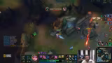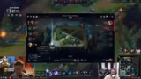 01:42:23Ein weiterer Engage-Versuch in der Mitte wurde eingeleitet, nachdem der Gegner-Heimerdinger kein Flash mehr hatte. Der Streamer spielte Yuumi auf dem Heimerdinger, um den Gegner-Jungler zu kontrollieren. Es gab eine klare Absprache, zuerst auf die Gegner-Yuumi zu zielen, was jedoch fehlschlug. Der Gegner-Heimerdinger wurde daraufhin zum Ziel, doch der Angriff scheiterte, da der Support die Lantern falsch platzierte und der Gegner entkommen konnte.