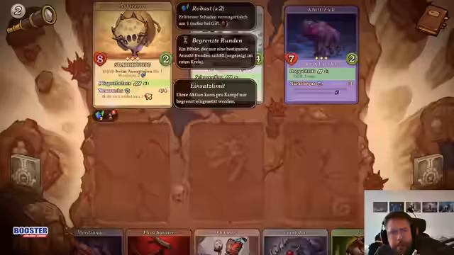 00:30:30Nach verschiedenen Erfolgen in den vorangegangenen Runden, kämpft der Streamer gegen den Endboss des Spiels. Die Strategie konzentriert sich darauf, bestimmte Fähigkeiten wie 'Versteckte Kraft' zu nutzen, die nur unter bestimmten Bedingungen aktivierbar sind. Trotz eines klugen Zuges, bei dem er durch Fähigkeiten wie 'Egelkönig' eine Kreatur bei gleichem Tempo rettet, geht der Kampf letztendlich verloren.