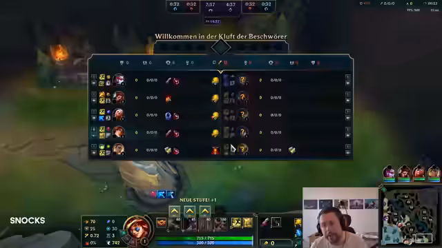 00:00:01Der Stream beginnt mit herzlichen Begrüßungen des Streamers, der über technische Alltagsprobleme wie sein defektes Handy und die lästige Ladebuchse lamentiert. Er stellt die Theorie auf, dass dies ein Design-Fehler sei, damit man sich ein neues Gerät kaufen muss. Außerdem erzählt er von seiner Erlebnissen mit Champions und Gameplay-Entscheidungen in League of Legends, wobei er deutlich macht, dass er mehr TPS (Turns Per Second) haben möchte und die aktuelle Meta kritisiert.