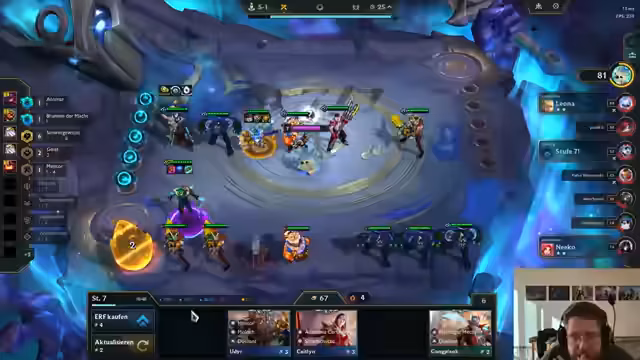 00:21:39Während des Streams wird hauptsächlich das Spiel Teamfight Tactics (TFT) gespielt. Der Streamer berichtet, dass er in der Vergangenheit extrem viel TFT gespielt hat, oft auch noch nach dem Stream, was zu Schlafmangel führt. Trotzdem ist er mit fast Diamond-Rang erfolgreich. Besonders hervorhebenswert ist, dass er diesen Erfolg ohne die Nutzung von Meta-Strategielisten erreicht, sondern durch eigenes Beobachten und Lernen der Spieltaktiken. Er beschreibt seine Spielweise als taktisch orientiert und sucht nach synergistischen Champions wie Rammus und Malsahar.