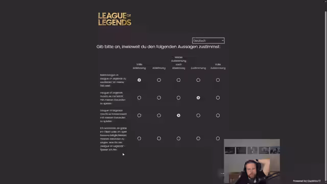 00:09:16Ein zentraler Kritikpunkt des Streamers ist die weit verbreitete Praxis des Googlens während der Spielpausen. Er ist frustriert, dass seine Gegner in seiner Elo (Low Master/Diamond 1) ständig Informationen über Champion-Counters nachschlagen, anstatt eigene spielerische Fähigkeiten zu entwickeln. Er empfindet dies als Verfall des Spielniveaus und spricht von einer 'verrückten' Welt, in der jeder Zugriff auf Informationen hat, was das Spiel für ihn weniger authentisch und schwieriger macht.