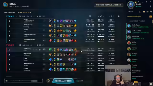 04:37:17Der Streamer ist zunehmend frustriert über seine Erfahrungen in der Solo-Q. Er beschreibt die Mitspieler als asozial und unkooperativ und nennt das Spiel ein 'Bullshitfest'. Seiner Meinung nach ist das Niveau in den Spielen sehr niedrig und er kann seine Mitspieler nicht mehr als 'Menschen' sehen, was ihn emotional stark belastet. Er sieht die Lösung für solche Probleme in der Einführung eines Voice-Chats, der das Spiel für ihn wieder machbarer machen würde.
