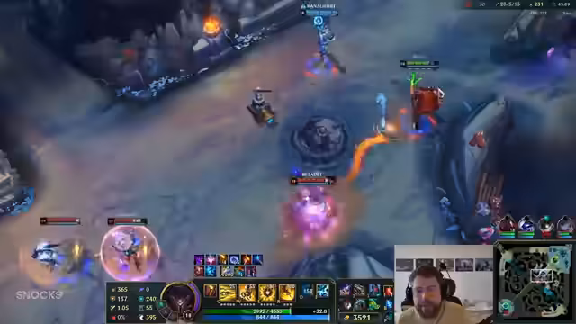 02:58:01Die Top-Lane wird für das neue Spiel festgelegt, und der Streamer wählt erneut Sahin. Es kommt zu Diskussionen über die Champion-Auswahl anderer Mitspieler und deren Eignung. Der Streamer klärt, dass er Top spielt, während andere Mitspieler ihre Lanes einschlagen sollen. Während des Spiels wird die Leistung des Supports Ginny gelobt und gleichzeitig strategische Fehler wie ein zu früher oder spät eingebrachter Dark Harvest kritisiert.