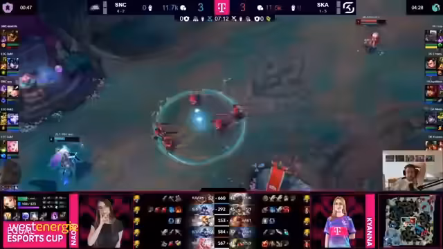00:13:30Fokus liegt auf dem ersten Match der Gruppe B zwischen SK Gaming und Supernova Comets. Der Streamer analysiert die Drafts beider Teams. Für SK wird ein einfaches, aber effektives Lineup mit Seraphine und Xinsau hervorgehoben, während SNC mit Ashe und Lux auf Highrange setzt. Er diskutiert Match-ups wie Aphelios gegen Lux und die Rolle von Kianas Nautilus-Support für SK. Das Spiel wird als chaotisch und kampfbetrieben beschrieben, mit strategischen Fehlern von SK und einer starken Comeback-Performance durch Wards und Teamplay von SNC.