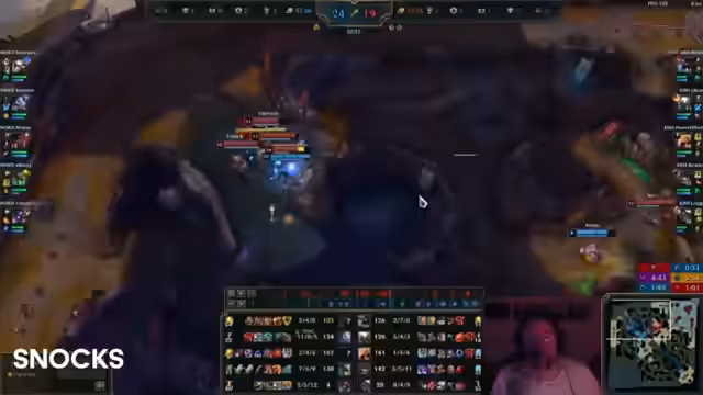 03:47:27Das Team diskutiert über eine mögliche Toplane-Rotation, um dem Toplaner zu helfen, da dieser Schwierigkeiten hat. Es wird entschieden, dass der Streamer nach Top geht, um die Grubs zu sichern. Es wird vermutet, dass der gegnerische Jungler ebenfalls an den Grubs interessiert ist. Währenddessen wird die Zyndra sich zurückziehen und sich per Teleport wieder in die Lane begeben. Es kommt zu einem überraschenden Angriff der gegnerischen Zyndra, die ihre Ult einsetzt. Die Botlane wird als anfällig eingeschätzt. Der Streamer stellt fest, dass viele Blades auf der Toplane fehlen und der gegnerische Bruno seinen Flash eingesetzt hat. Es wird kurz überlegt, ob man die Botlane verteidigen soll, aber verworfen, da die Wave schlecht steht. Der Streamer bietet einen erneuten Switch an, um die Situation zu entspannen, muss aber selbst bald basen gehen. Die Notwendigkeit, zur Toplane zurückzukehren wird betont, während gleichzeitig überlegt wird, ob der Drache noch rechtzeitig gelegt werden kann. Die Topside-Situation soll zurückgesetzt werden, während man sich auf die Botlane konzentriert, wo die Gegner ihre Ult noch haben, aber wenig Schaden verursachen.