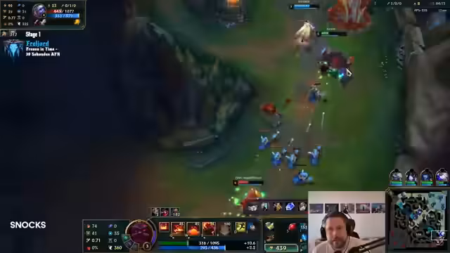 00:28:06Die Verteidiger gehen mit den Champions Orn, Volibear, Ashe, Sejuani und Lissandra ins Spiel. Das Herausforderer-Team entscheidet sich für ihre Champs. Der Streamer spielt Ashe als ADC, einer der Verteidiger übernimmt Lissandra in der Mitte und Volibear im Jungle. Bevor das Spiel beginnt, klärt der Streamer noch technische Fragen und stellt sicher, dass alle Teams auf demselben Server spielen und alle nötigen Einstellungen vorgenommen haben. Nach einer kurzen Vorbereitungszeit beginnt das Spiel in der Region Freljord.