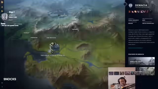 01:14:32Der Stream beginnt mit einer Einführung in das fantasyreiche Runeterra, speziell in das Königreich Demacia. Dieses Reich repräsentiert Ordnung und Gesetz, im Gegensatz zu anderen Regionen, die von Chaos geprägt sind. Demacia wurde von Orlon in einer Zeit gegründet, als Magie eine große Bedrohung darstellte. Die Mauern aus Petrizit schützen nicht nur gegen Feinde, sondern auch gegen die Magie selbst. In diesem Reich wird Magie nicht als Gesehen, sondern als Gefahr angesehen und ist in der adeligen Gesellschaft allgegenwärtig, während Niedergeborene verstoßen werden.