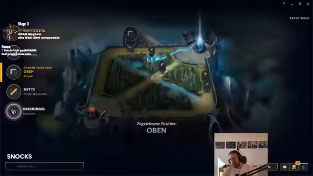 00:13:20Die Reise beginnt in der Region Freljord und endet in Targon. Die Route wird von den Teilnehmern selbst bestimmt. Es gibt zwei Teams: ein Lore-Team (Verteidiger) und ein Herausforderer-Team. Jede Region bietet einen Bonus für das Herausforderer-Team, wie beispielsweise 30 Sekuten AFK-Pflicht für das Verteidiger-Team. Vor jeder Stage wird eine kurze Lore-Geschichte vorgelesen. Für jede Stage haben die Teams 5-10 Minuten Zeit, ihre Champs auszuwählen. Das Spiel läuft als In-House in League of Legends ab, bei dem die Teilnehmer nur ein Leben haben.
