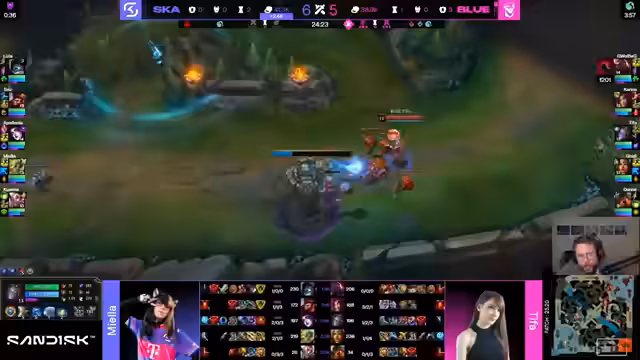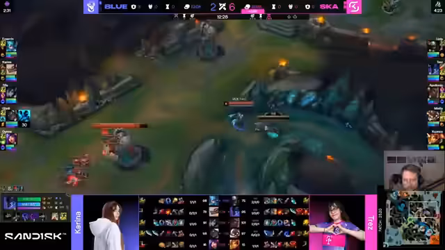 02:12:05Der Streamer kommentiert live das Playoff-Spiel zwischen 'SK Avarosa' und den 'Blue Otters'. Er analysiert die Picks und Bans, wie beispielsweise die sehr aggressive Level-1-Phase, und bewertet die Team-Kompositionen. Die von SK Avarosa gewählte 'Ornn-Jarvan-Lulu'-Kombination wird als sehr solide gegen das 'Catch-Potential' der Gegner angesehen. Während des Kommentars werden die strategischen Entscheidungen, die Item-Choices und die spielerischen Leistungen der einzelnen Teilnehmerinnen kontinuierlich bewertet und kritisch hinterfragt.