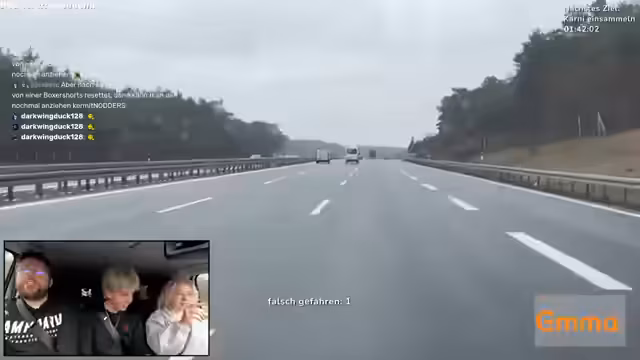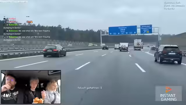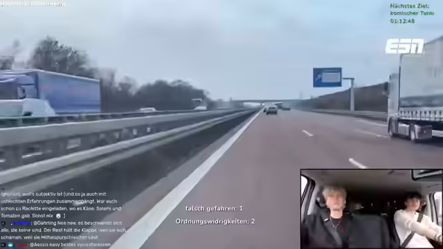 01:57:03Während der Fahrt kommt es zu humorvollen und skurrilen Situationen, wie einem Tesla, der automatisch fährt und andere Fahrzeuge überholt. Die Streamer diskutieren über die Freiheit beim Fahren und die Einschränkungen durch moderne Autosysteme. Es werden Anekdoten über Ordnungswidrigkeiten und Straftaten im Straßenverkehr erzählt, darunter eine Geschichte über eine Freundin, die ihren Führerschein wegen betrunkenen Fahrradfahrens verloren hat und eine MPU (Idiotentest) machen musste. Die Schwierigkeiten und Fallstricke der MPU werden humorvoll beleuchtet, wobei betont wird, dass die Prüfung an sich nicht schwer sei, aber viele psychologische Fallen stelle. Diese Geschichten führen zu einer allgemeinen Reflexion über die Regeln und Absurditäten des Straßenverkehrs.