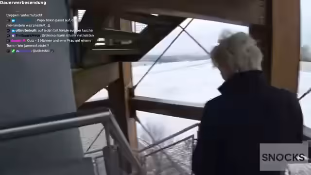 04:42:19Die Gruppe erreicht den Saale-Turm in Thüringen und bereitet sich auf den Aufstieg vor. Es wird ein Wettrennen der Streamer über die 192 Stufen des 43 Meter hohen Turms vorgeschlagen, bei dem der Letzte 50 Subs an die anderen zahlt. Die kalten Temperaturen und der Wind werden thematisiert, und es wird humorvoll über die 'Hassende Hanna' und die Notwendigkeit von warmer Kleidung gesprochen. Beim Eintritt zum Turm stellt sich heraus, dass ein Eintrittsgeld von zwei Euro pro Person in Münzen erforderlich ist, was zu einer Diskussion über das 'Erschleichen von Leistungen' und die Überwachung durch Videokameras führt. Trotz der Herausforderungen und der Höhenangst einiger Teilnehmer, wird die Aussicht vom Turm als 'sexy' und 'ultra krass' beschrieben, mit einer schönen winterlichen Landschaft und goldenen Herbstfarben.