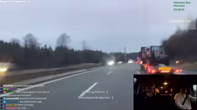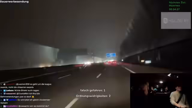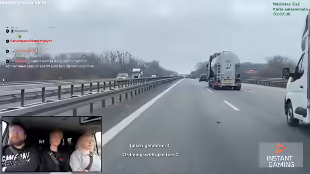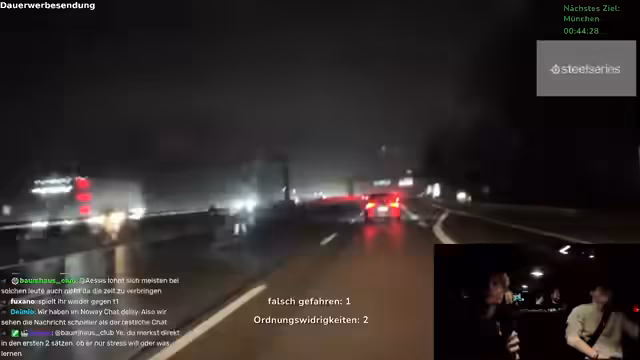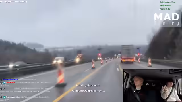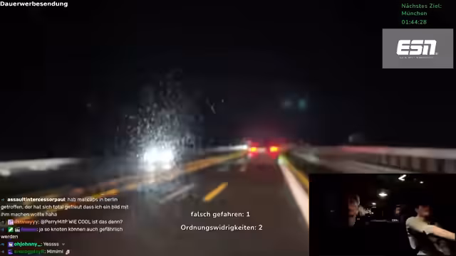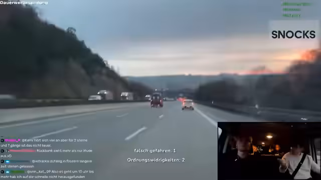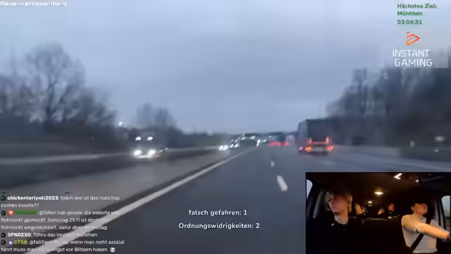 05:19:52Auf der Tour gab es bisher keine größeren Unfälle oder Probleme, abgesehen von verpassten Ausfahrten. Die ungewöhnlichste Begebenheit war, als ein Autofahrer von der Polizei von der Autobahn abgedrängt wurde. Dieser Vorfall wurde zum meistgesehenen TikTok des Streamers, übertraf sogar Inhalte von Fake Out und Instagram. Trotz der Einordnung in den TikTok-Kommentaren als 'ganz natürlich', empfand der Streamer dies als eine einzigartige und nie zuvor gesehene Situation. Die Polizei bremste die Autobahn auf 50 km/h herunter, um den Sportwagen zu zweit auszubuxieren, und wartete auf Verstärkung. Dies führte zu Verwirrung und Kommentaren, die die Streamer als 'Loser' oder 'Bastard-Streamer' bezeichneten, weil sie den Vorfall als außergewöhnlich empfanden, während andere es als alltäglich abtaten. Der Vorfall wurde von vielen als '0815' bezeichnet, obwohl ein deutscher Sportwagen von zwei Streifenfahrzeugen von der Autobahn gedrängt wurde, was der Streamer als äußerst ungewöhnlich empfand.