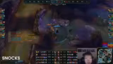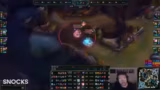 02:50:48Der Caster analysiert das mangelhafte Map- und Laning-Verhalten beider Teams. Es wird kritisiert, dass Autofill auf der Bot-Lane den Smite gegen den Jungle verloren hat und dabei nicht rechtzeitig fightet oder getradet hat. Das geringe CS des ADCs von V9 und das fehlerhafte Management der Wellen werden als entscheidende Mängel identifiziert. Die ausufernde Senna von V9 wird anfangs disrespektet, entwickelt sich aber schnell zu einem Problem für den Gegner, der mit seinem unorthodoxen Build und der hohen späteren Schadensoutput überfordert scheint. Ein riskantes Solo-Roam des Junglers wird ebenfalls angesprochen.