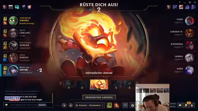 02:55:40Aufgrund der bevorstehenden Partie wird ein Wechsel der Strategie vollzogen. Anstatt Lucian weiterzuspielen, der als nutzlos gegen das gegnerische Team gilt, wählt der Streamer nun Nauticus. Diese Entscheidung wird als notwendige Anpassung an das Matchup gesehen, selbst wenn es ein Champion ist, den er nicht perfekt beherrscht. Das Ziel ist, die vielen Assassin-typischen Gegner des gegnerischen Teams durch Picks wie Poppy oder die Nautulus-Engage besser zu bekämpfen, anstatt auf Damage zu setzen. Der Fokus liegt auf dem Erlernen und der Anpassung an die vorliegenden Umstände.