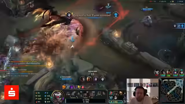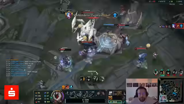 08:08:44Für das nächste Spiel wählt der Streamer den Supporter Renata Glasc. Sein Ziel ist es, trotz eines schwierigen Line-ups und fehlender eigener Bedrohung das Spiel zu gewinnen. Nach anfänglichen Problemen und Toden entwickelt er einen Plan, mit Renata aggressiv zu agieren und versucht, seine Mitspieler zum Kampf zu motivieren. Nach einem gewonnenen Teamfight erhält er sein Ult und plant nun, den Baron Nashor anzugreifen, um die Partie zu entscheiden.