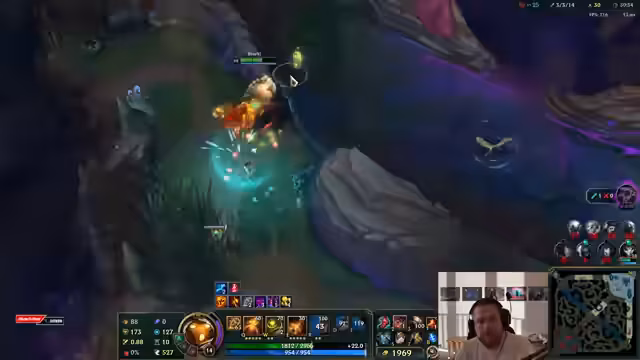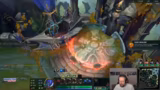 09:01:57Nach einem erfolgreichen Anfang verliert der Streamer in der Mid-Game-Phase die Übersicht. Er kritisiert stark einen Fehlspiel seines Junglers, der sich auf ein Camp konzentriert, während der Drache wichtiger wäre. Obwohl sein Pantheon stark erscheint, fühlt er sich hilflos, da seine Mitspiiler gegnerische Fähigkeiten nicht vermeiden und er nicht in die Schlachten eingreifen kann, ohne sterben zu müssen.