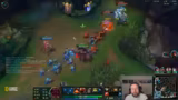 00:29:43Die gesammelten Erkenntnisse und die Mission der Masterclass werden direkt im Spiel umgesetzt. Der Streamer, der sich auf die Aufnahme von Material für sein Wave-Management-Video konzentrieren will, analysiert seine Entscheidungen im Spiel, auch wenn sie nicht immer perfekt sind. Er kommentiert seine Picks, seine Positionierung und seine Teamkommunikation, wobei er Schwächen in der Makro- und Teamplay-Ebene sowohl bei sich als auch bei seinen Mitspielern thematisiert und deren Einfluss auf das Spielverlauf bewertet.