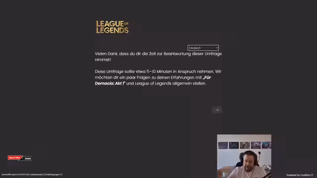 05:45:18Ein Zuschauer fragt den Streamer spontan für eine fünfminütiges Interview bezüglich einer Facharbeit über E-Sports an. Nach anfänglichem Spaß über den Vorschlag, das Interview gegen Geld zu verkaufen, stimmt der Streamer der Anfrage nach einer kurzen Rücksprache zu. Er ist grundsätzlich offen für solche Anfragen, die häufig im E-Sport-Bereich getätigt werden, und bietet an, die Fragen entweder direkt im Stream oder in einem separaten Kanal zu beantworten. Um sich nach dem anstrengenden Gaming-Tag abzulenken, zeigt er Interesse an einem neuen Spiel und erwähnt mögliche Champion-Picks für die nächste Runde wie Zilean oder Rell.