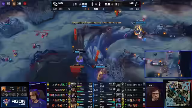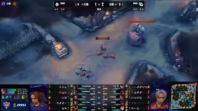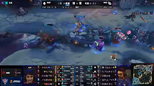 02:21:39Der Champion Kled wird als nutzlos nach der zehnten Minute bei einem 10-0-Stand beschrieben. KC wird erwartet, den nächsten Drachen zu bekämpfen, wobei Amumu als stärkster Champion gilt, aber kein Teleport hat. Die Ratten werden auf der Bot-Seite als stärker eingeschätzt. KC hat die bessere Position und ist früher am Drachen, um zu zonen. Nemesis versucht, sich zu verbinden, und es deutet sich ein Teamfight an. Ein Engage von Rell führt zu einem schnellen ersten Kill für KC und dem Drachen. Die Stärke der Bruiser mit Trinity Force oder Thunder Sky wird erneut betont, da sie schwer zu töten sind und viel Schaden verursachen, während Carries drei Items benötigen, um mithalten zu können. Los Ratones hat Schwierigkeiten, den Drachen zu contesten, da sie in der Mitte und auf der Bot-Lane reingepusht wurden und zu spät und ungruppiert facechecken. Ein schöner Flash Engage von Prime führt zu Kills auf LJ, wodurch Nemesis und Shawnee machtlos sind. KC wird für ihr präzises Timing gelobt, bei dem sie genau dann zünden, wenn Los Ratones einen Punkt überschreitet. Die Orianna wartet geduldig auf den Ablauf des Rated-C, bevor die Shockwave kommt, was Los Ratones keine Chance lässt. Die Wichtigkeit der Vorbereitung und des Timings aus der Basis wird hervorgehoben, da solche Fehler auf LEC-Niveau nicht passieren dürfen.