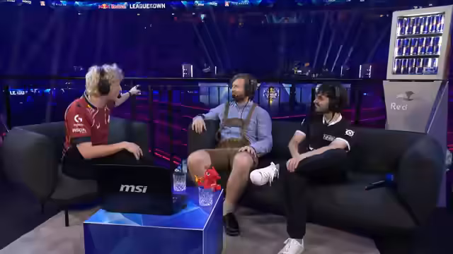 06:50:53Es wird eine große Überraschung angekündigt, die das Publikum aus den Stühlen fallen lassen soll. Die Moderatoren bitten um Feedback zur Show und diskutieren über mögliche Verbesserungen. Es wird erwähnt, dass NoWay einen Solo-Kill gegen T1 erzielt hat. Die Highlights des Events werden besprochen, wobei die Produktion und die Emotionen im Stadion besonders gelobt werden. René, der spontan als Moderator eingesprungen ist, wird für seine Leistung gefeiert. Es wird eine weitere Ankündigung gemacht: Bröki wird 2026 wieder bei NNO spielen, was große Freude und Emotionen auslöst. NoWay hält die letzten Worte und bedankt sich bei Red Bull und allen Unterstützern für das unvergessliche Event in seiner Heimatstadt.
