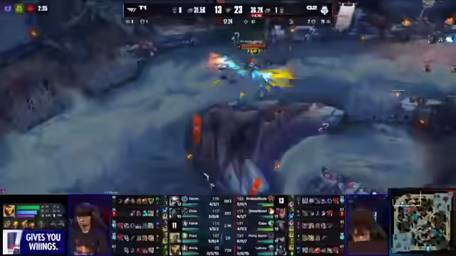 03:25:55Die Arena erwacht zum Leben und feuert G2 an, während die Franzosen von KC sich nicht schlecht schlagen. Die Squishiness von Supports mit Redemption-Builds wird kritisiert, da sie oft 'One-Shot' sind. Ein weiterer Tod von Aatrox und die fehlende permanente DPS-Quelle von KC, die auf Draven angewiesen ist, werden diskutiert. Ein entscheidender Kill auf Yike ist ein 'big' Moment, und G2 sichert sich den dritten Drachen, was bedeutet, dass in fünf Minuten der Soul Point erreicht wird. KC muss diesen Fight gewinnen, um eine Chance zu haben. G2 ist zufrieden mit dem Trade-Damage am Turm und dem gesicherten Drachen. Die Goldverteilung wird diskutiert, wobei Hans das Gold erhält, um zu skalieren. Ein Solo-Kill auf der Mid-Lane, bei dem ein Carry gegen Xante verliert, wird als 'zukunftsweisend' bezeichnet. Die Fehler von KC, insbesondere die verpassten Knock-ups von Nautilus, werden hervorgehoben. Ein Solo-Kill von LeBlanc gegen Kalista wird als 'sehr sehr sexy' beschrieben und als Desaster für KC. G2 sichert sich den Baron, was den Weg zum Soul Point ebnet. Die aggressiven Plays von G2, die oft zu Kills führen, werden gelobt. Die Diskussion über die 'süßen Kleinen' des Barons und die Item-Builds von Draven, der mit Whirling Death den nächsten Kill sichert, zeigen die Dominanz von G2. Das Red Bull Baron Powerplay soll der letzte Play des Games sein, da G2 keine weiteren Drachen benötigt. Die Möglichkeit, zwei Lanes herunterzudrücken und zu siegen, wird als wahrscheinlich angesehen. Die anfängliche Ausgeglichenheit des Spiels weicht einer klaren Dominanz von G2 nach einem entscheidenden Catch, bei dem Aatrox und Kalista sterben. Die Enttäuschung der französischen Fans, die nicht gegen den Weltmeister spielen können, wird erwähnt. G2 drückt die Lanes herunter und sichert sich den Sieg, wobei LeBlanc den ersten Turm holt und weitere Kills folgen. G2 gewinnt die erste Partie gegen T1, was als 'GG' und 'gut gespielt' von G2 bewertet wird.