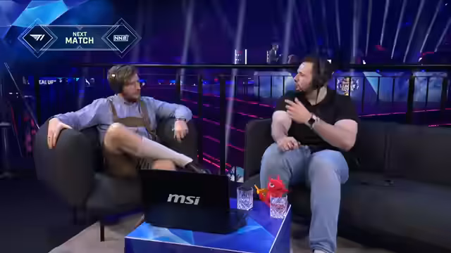 03:37:31Nach dem Sieg von G2 wird das Spiel als 'sehr stark' beschrieben, mit einem holprigen Early Game, aber einer schnellen Stärkeentwicklung durch den 'Fake Caps'. Die Anspielung auf 'Fake Caps' und seine LeBlanc-Performance wird humorvoll aufgegriffen, wobei die Geschichte um seinen Bart und die Sonnenbrille im Spiel thematisiert wird. Die Wintermap wird als 'sehr geil' und 'zehn von zehn' bewertet, insbesondere mit den vielen Easter Eggs. Die Kritik, dass Riot die Wintermap jahrelang ignoriert hat, wird angesprochen, da sie angeblich zu teuer war. Der Abschied von Kamiko von der Bühne und die bevorstehende Ankunft von T1, dem Weltmeister, wird als historischer Moment für München beschrieben. Die Freude der Fans, die Jungs von T1 wieder auf der Bühne zu sehen, insbesondere im Matchup gegen G2 als bestes europäisches Team, wird betont. Ein Interview mit dem 'Fake Caps' folgt, in dem er seine Freude über den Sieg und seine beeindruckende LeBlanc-Performance ausdrückt. Er bestätigt, dass es eine Herausforderung war, auf die Bühne zu kommen, und dass er gerne in der LEC spielen würde, wenn G2 ihm die Chance gäbe. Er äußert Vertrauen in G2, T1 zu besiegen. Nach dem Interview kündigt der Caster Toonie eine Verstärkung an und stellt sich selbst als 'Bam! It's me!' vor, was auf einen Wechsel in der Caster-Besetzung hindeutet. Die Diskussion über das Spiel wird fortgesetzt, wobei Maxim seine Eindrücke teilt und die Leistung von G2 lobt. Die Enttäuschung der K-Corp-Fans über das Ausscheiden ihres Teams und die Tatsache, dass K-Corp mit Substituten angetreten ist, werden thematisiert. Die gute Leistung von K-Corp im Early Game wird anerkannt, aber die Dominanz von G2 im Mid-Game, insbesondere durch Broken Blade, wird hervorgehoben.