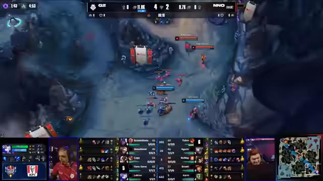 00:40:05G2 Esports, mit Spielern wie Carriott, Faker und Ona, wird als Team mit großem Potenzial für die kommenden Jahre und insbesondere für das aktuelle Turnier hervorgehoben. Die Hosts betonen, dass es bei Red Bull League of its Own nicht nur darum geht, gut in seiner Rolle zu sein, sondern auch kreativ und unkonventionell zu spielen. G2 wird als 'Schiff des Theseus' beschrieben, mit Faker als Kapitän, dessen Präsenz das Team zusammenhält. Das erste Match von G2 gegen NNO wird mit Spannung erwartet, da G2 nach einer enttäuschenden Worlds-Performance die Gunst der Fans zurückgewinnen möchte. Die Hosts äußern die Hoffnung, dass G2 den Rumble von Brok'n Blaine sehen wird. Die bisherige Saison von G2 wird als erfolgreich bewertet, insbesondere da LeBrov und Skumont als Rookies ins Team kamen und sie die weiteste Platzierung in Worlds seit der Swiss-Stage erreichten. Die Vorfreude auf die Stage-Intro und die Gerüchte über Lederhosen in München unterstreichen die einzigartige Atmosphäre des Events. Die Rückkehr von Yamato in einer Coaching-Rolle wird ebenfalls positiv erwähnt.
