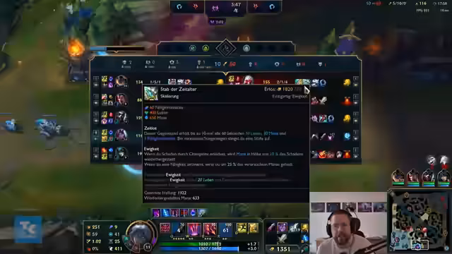00:05:57Der Streamer startet nach einem kurzen Schlaf in die Ranked-Saison. Zunächst beschäftigt er sich mit Champion-Wahlen und den Schwierigkeiten im Meta. Er analysiert sein erstes Spiel, in dem er Tristana spielt und bemängelt den gegnerischen Leona-Pick, da er diesen als ineffektiv ansieht. Er vermutet, dass seine Mitspielerin auf einem anderen Skill-Level ist, was die Zusammenarbeit erschwert. Im Verlauf der Lane-Phase kritisiert er eigene mechanische Fehler und die des Teams, insbesondere die schlechte Positionierung und fehlende Synergie, die zu einem langsamen Progress im Spiel führt.