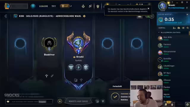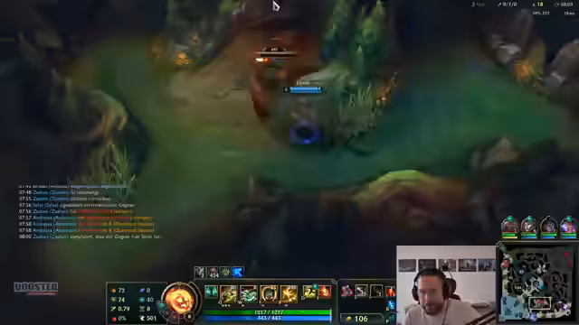 05:02:14Der Streamer erzählt Anekdoten aus seinem privaten Leben. So berichtet er von einer Party im Kölner Karneval, bei der seine Freundin als Pflegerin für alte Menschen arbeitet. Er spricht über seine Diamond-Elo und wie er sich als Supporter fühlt, wenn er einen ADC nicht hatst. Die Stimmung ist oft humorvoll und selbstironisch, wenn er über seine Freundin spricht, die auf ihn warten muss, oder über sein angebliches 'Dating-Drama'.