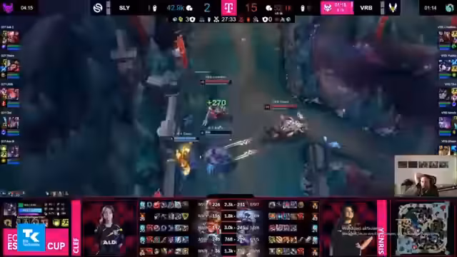09:32:04Die anfänglichen Nachteile werden für Solari Academy zum Verhängnis, da der Goldunterschied, insbesondere bei den AD-Carries, zu groß wird. Analyst und Streamer sehen keiner realistische Chance mehr, das Spiel zu drehen, solange Solari nicht einen zwingenden Engage findet. Der Schlüsselfehler fällt schließlich im entscheidenden Fight um den Nashor. Mehrere Spieler von Solari agieren zu eigenmächtig und voreilig, anstatt auf das Team zu warten. Diese koordinative Katastrophe führt zum Verlust des Nashors und damit wahrscheinlich auch der Teilnahme am Finale.