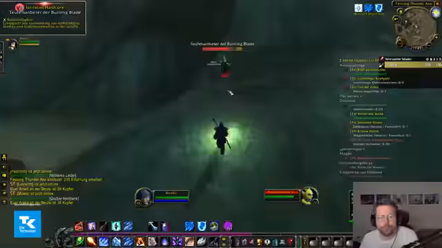 01:06:39Während des Dungeons-Runs unterbricht der Streamer für eine persönliche Note. Er kündigt an, 'perfektes Essen für einen WoW-Gamer' besorgt zu haben, wobei er Sandwiches aus einem Tefal-Kontaktgrill preist. Dies zeigt seine praktische Herangehensweise während längerer Sessions. Gleichzeitig werden Ausrüstungsdrops wie Stiefel und ein Mini-Boss, der 'Garstige Geheimnisse' heißt, besprochen, der eine Belohnung in Erfahrungspunkten bringt. Dies verbindet Gameplay mit persönlichen Gewohnheiten.