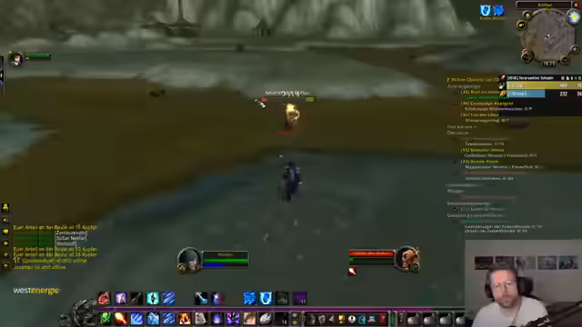00:01:01Der Streamer begrüßt das Publikum und stellt die aktuelle Spielsituation vor. Es besteht bereits eine Gruppe aus Tank, DD und Priester, doch ein weiterer Spieler wird benötigt, um einen kompletten Dungeon-Gruppe zu bilden. Das Ziel ist es, den Friedhof im Kloster zu bestreiten. Man diskutiert den Treffpunkt, South Shore, und die potenzielle Gefahr des Weges durch das feindliche Gebiet. Es wird die Notwendigkeit eines Tanks betont, da dies eine schwierige und riskante Klasse ist.
