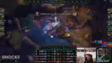 03:50:37Das Spiel ist in das Mid-Game übergegangen. Der Streamer, der einen sehr starken Champion spielt, schlägt vor, aggressiv zu agieren und einen gegnerischen Champion zu 'one-shot'en, solange die gegnerische Lillia abwesend ist. Er betont die Wichtigkeit von gutem Vision-Control, um die Bewegungen des Gegners im Auge behalten zu können. Die Entscheidungen der Mitspieler in kritischen Situationen, wie das Einnehmen des Drachen, werden kritisch hinterfragt. Der Streamer fühlt sich in seiner Rolle stark, findet es aber frustrierend, wenn das Team nicht koordiniert auf seine Angriffe reagiert.