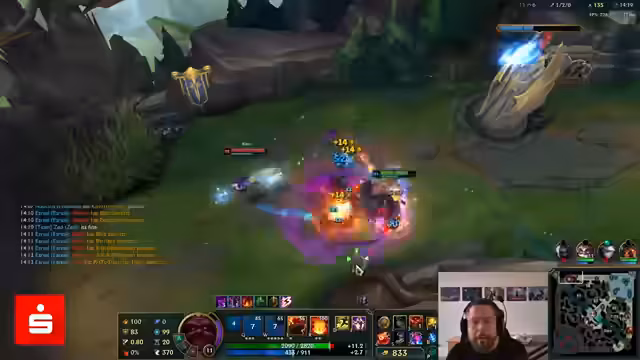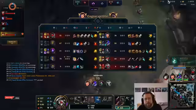 07:40:42Der Stream beginnt mit einer Phase äußerst intensiver und hektischer Teamkämpfe in einem ARAM-Spiel. Kommentiert werden aggresive Engagements, verpasste Ultimates und tödliche Fehler. Der Kommentator beschreibt kritisch, wie gegnerische Champions wie Kalista und Karma enorme Schaden verursachen und wie das eigene Team aufgrund von Positionierungsfehlern und ineffektivem Sterben unter Druck gerät. Die Spannung steigt, als er versucht, mit seiner Ultimate entscheidende Vorteile zu erzielen, aber oft im Kampf getötet wird, bevor er eine Wirkung erzielen kann, was zu Frustration und ständiger Revitalisierung führt.