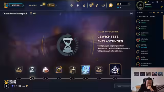 00:08:26Nach einem Übungsspiel im League of Legends Solo-Q widmet sich der Streamer dem Teamfight Tactics. Er stellt eine Comp vor, die ihn in der Diamant-Liga regelmäßig in die Top 4 gebracht hat und auf die er stolz ist. Er analysiert aktuelle Meta-Trends und den populären 'Switch Counter', der viele Magier enthält, was er als unschön empfindet. Zudem diskutiert er Champion-Kombinationen, die ihm im Kopf umherschwirren, und erwähnt eine besondere Poppy-Komp mit über 13.000 Hardsteel-Stacks.