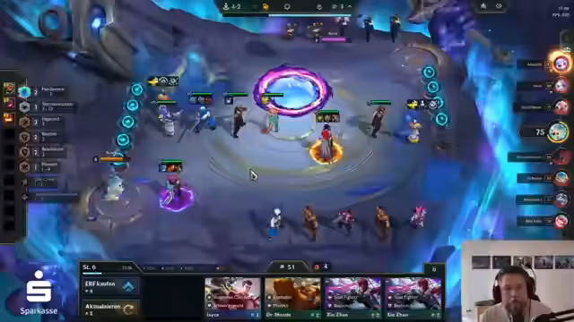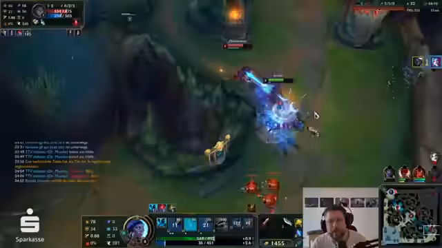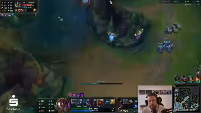 01:56:33Der Streamer analysiert das aktuelle Spielgeschehen, das er als Tragödie und langweilig beschreibt. Er bemängelt, dass sein Team aus vier Champions besteht, die nur auf physischen Schaden ausgelegt sind, und er gezwungen ist, Rüstung zu bauen. Anstatt sich auf die Map zu konzentrieren, widmet er sich kulinarischen Themen wie dem Käsebrot und kritisiert die Auswahl an Backwaren in Berlin, was den Fokus vom eigentlichen Spiel nimmt.