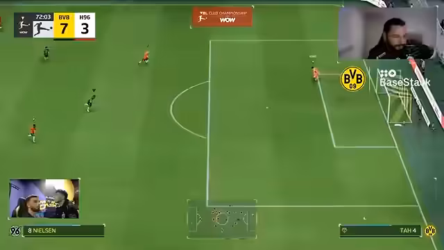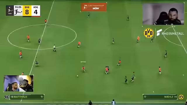 00:10:34Der Streamer begrüßt die Zuschauer zum VBL Nachholspieltag 8, BVB gegen Hannover 96. Er freut sich über die zahlreichen Zuschauer und erwähnt den gestrigen Sieg gegen den HSV. Das erste Matchup ist ein 2 gegen 2 mit Rohe und Ali gegen Jamal und Itzriyad von Hannover 96, gefolgt von De Nino gegen Jamal im Einzel. Der Streamer betont die Wichtigkeit des Spiels für die Tabelle und die Ausgangslage in der virtuellen Bundesliga. Erwähnt wird auch, dass Jamie Gittins live vor Ort war, um die E-Footballer zu unterstützen. Nach einigen Begrüßungen und Erwähnungen von Zuschauern beginnt die Partie. Rohe und Ali spielen in den E-Football-Trikots gegen Hannover 96. Es gibt erste Angriffe und Abseitsentscheidungen. Ein Freistoß von Rohe wird abgefälscht. Es folgen weitere Chancen und Balleroberungen. In der 15. Minute gehen Rohe und Ali mit 1:0 in Führung, aber Hannover gleicht durch einen direkten Freistoß aus und dreht das Spiel innerhalb von vier Minuten auf 1:2. Der BVB gleicht zum 2:2 aus, und Ali erzielt die 3:2 Führung. Kurz vor der Pause erhöht der BVB auf 4:2 durch ein Kopfballtor von Rohe nach Flanke von Ali. Hannover verkürzt in der letzten Minute der ersten Halbzeit auf 4:3. Die erste Halbzeit endet mit einem Stand von 4:3.