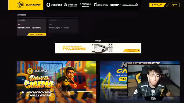 00:08:27Es wird auf die BVB Gaming Seite hingewiesen, deren Fokus nicht mehr nur auf FIFA liegt, sondern auf verschiedenen Community-Spielen wie Subway Surfer und Clash Royale. Für die aktuelle Subway Surfer-Challenge wird ein BVB-Trikot als Hauptpreis ausgelobt, der von dem Spieler Emin mit einem Rekord-Score von elf Millionen Punkten gewonnen wurde. Der Streamer kündigt eine Minecraft Challenge an, bei der der Signal Iduna Park nachgebaut werden muss. Der Gewinner dieser Challenge erhält zwei Tickets für ein Heimspiel im Stadion.