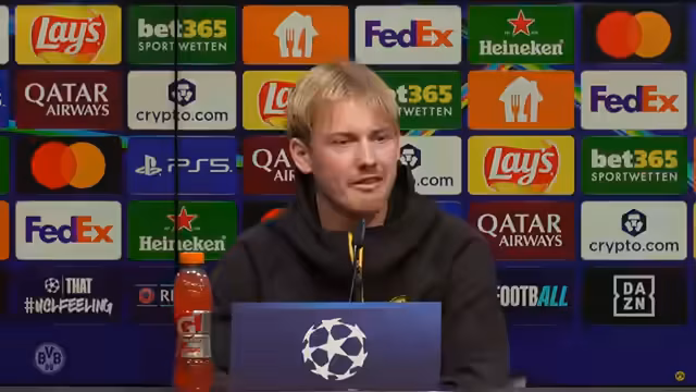 00:06:46Ein norwegischer Journalist fragt nach der Einschätzung des norwegischen Fußballs und von Bodo/Glimt. Julian Brandt beginnt mit der Antwort und hebt die positive Entwicklung des norwegischen Fußballs hervor, sowohl auf National- als auch auf Klubebene. Er verweist auf die WM-Qualifikation und die vielen norwegischen Spieler in großen europäischen Clubs. Niko Kovac ergänzt, dass die norwegische Entwicklung ein Vorzeigeprojekt für andere Länder sein könnte und betont den großen Anteil, den norwegische Spieler wie Julian Brandt auch am Erfolg des BVB haben.