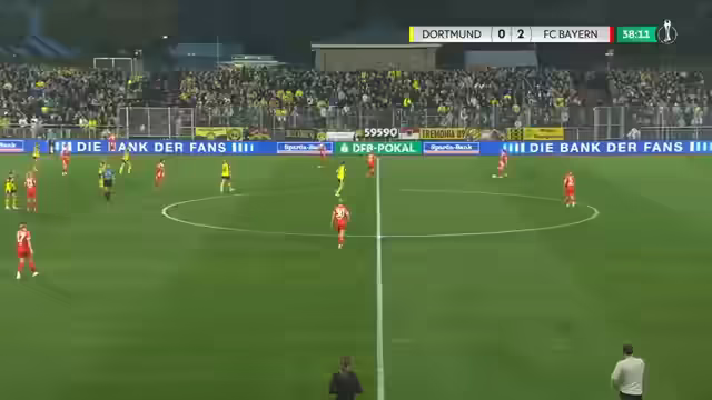 01:59:49Jasmin Jäbes wurde durch Emilia Powell ersetzt, die bereits in der Qualifikation gegen Gladbach gespielt hatte. Bayern spielt in der Frauenbundesliga gegen Werder Bremen und in der Champions League gegen Barcelona. Die Champions League wird nicht einfach für Bayern, aber sie müssen gegen starke Teams spielen, um erfolgreich zu sein. Damjanovic foulte und erhielt einen Ellbogenstoß. Sie hat ein eigenes Café in München namens The Nine Fine Roastery. Einige Bayern-Fans könnten die Leistung in der zweiten Halbzeit kritisieren. Bayern gewann das Spiel, aber Dortmund könnte als größerer Gewinner hervorgehen, da sie Aufmerksamkeit erregt und eine gute Leistung gezeigt haben. Markus Ergner ist der perfekte Trainer für Dortmund. Bayern München gewann als Titelverteidiger gegen Borussia Dortmund mit 2:0. Pernille Harders Doppelpack sicherte Bayern den Sieg. Laura van der Lahn war die Spielerin des Spiels für Dortmund, da sie eine höhere Niederlage verhinderte. Bayern musste sich in der ersten Halbzeit anstrengen und Dortmund kam in der zweiten Halbzeit stark auf, konnte aber kein Tor erzielen. Endstand: Dortmund 0, Bayern 2.
