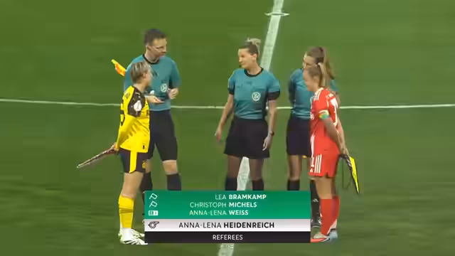 00:09:01Der Frauen-DFB-Pokal-Spiel zwischen Borussia Dortmund und FC Bayern München beginnt vor einer Rekordkulisse von 15.755 Zuschauern im Stadion Rote Erde. Bei den Gästen von Bayern München gibt es gleich sechs Änderungen im Vergleich zum letzten Spiel. Julia Gwin kehrt nach ihrer Knieverletzung zurück, Magdalena Eriksen startet in der Abwehr, und Ariana Caruso kommt für die verletzte Sara Zadrazil ins Spiel. Borussia Dortmund geht als Aufsteiger der Regionalliga West in die Partie, die als "David gegen Goliath"-Duell bezeichnet wird.