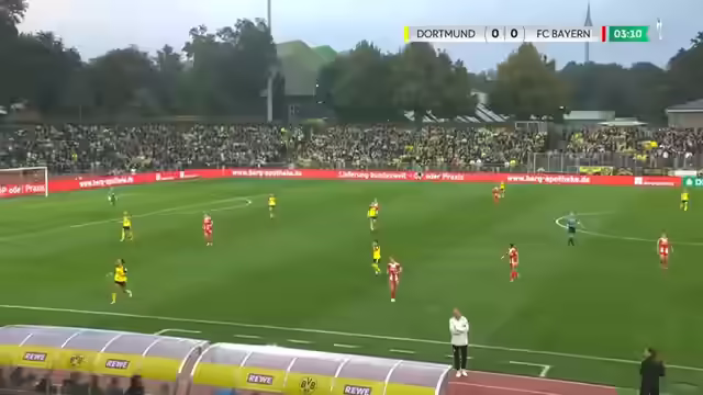01:42:58Lena Oberdorf klärte einen Kopfball von Nash & Weng vor der Linie. Dortmund konnte daraus etwas Selbstvertrauen ziehen, da sie in der zweiten Halbzeit mehr Torchancen als Bayern hatten, im Gegensatz zur ersten Halbzeit. Bayern hat eine starke Defensive und war vor dem Spiel 362 Minuten ohne Gegentor. Beim Saisonauftakt gegen Bayer Leverkusen wurde mit 57.762 Zuschauern ein neuer Zuschauerrekord aufgestellt. Dortmund hatte eine seltene Chance, aber ein schlechter Pass von Gwyn ermöglichte es Bayern, zu klären. Stanwijk hatte drei Assists beim 4:0-Sieg gegen Freiburg. Dortmunds Pohr verletzte sich, was die steile Lernkurve in einem Spiel gegen Bayern verdeutlicht. Ein Tor für Dortmund wäre ein wichtiger Schritt zurück ins Spiel. Laura van der Lahn und Natalia Padilla prallten zusammen, wobei sich Padilla am Knie verletzte. Van der Lahn spielte großartig und hatte keinen Grund, sich zu schämen. Dortmund droht die erste Heimniederlage seit 2020 und das erste Heimspiel ohne Tor.