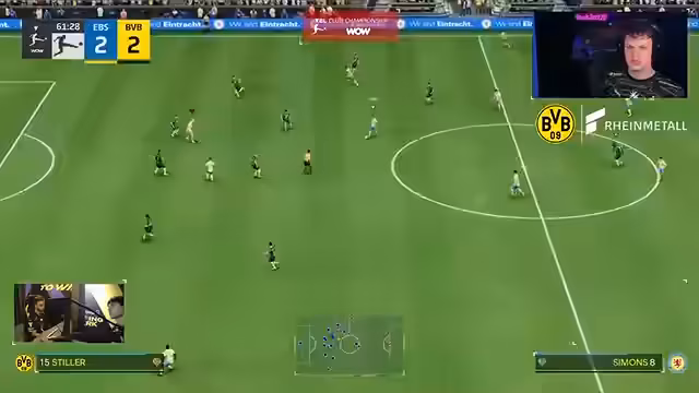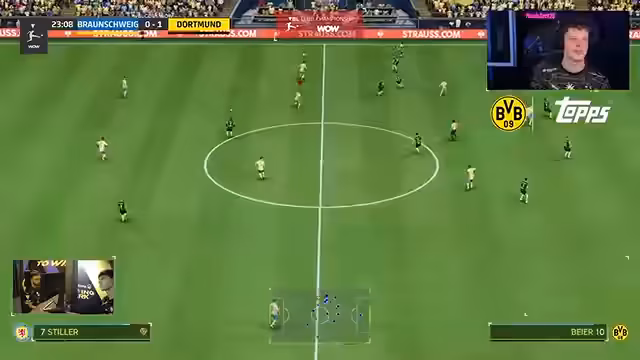 01:21:01Es wird betont, dass das zweite Spiel entscheidend ist, um die drei Punkte zu holen. Ein Tipp für das Spiel wird abgegeben (3:1 für Dortmund), obwohl Braunschweig als Tabellenletzter eigentlich schwächer sein sollte. Es wird in die Runde gefragt, ob Interesse an einem Elden-Wings-Stream besteht. Das Spiel beginnt, und der Streamer wünscht sich ein frühes Tor für Dortmund. Braunschweig macht jedoch gut Druck und hat einige Torchancen. Der Dortmunder Torwart hält die Null fest. Der Streamer gesteht, dass er von den ersten 30 Minuten nicht überzeugt ist und Dortmund sich schwer tut, Torchancen zu kreieren. Ein Ballverlust von Braunschweig in der Offensive wird als Glück für Dortmund bezeichnet. Das Spiel wird als typisches Dortmund-Spiel beschrieben, in dem sie sich gegen vermeintlich schwächere Gegner schwer tun. Die Halbzeitpause steht kurz bevor.