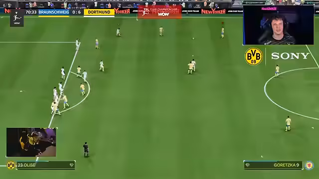 00:42:24Der Streamer erklärt, dass er vom BVB-Content-Team aufgrund seiner Dortmunder Herkunft und seiner vorherigen Teilnahme an der VBL engagiert wurde, um das Event mitzugestalten. Das Trikot, das er trägt, ist auch im Spiel erhältlich. Das erste Spiel beginnt, und der Fokus liegt auf den Spielern, die für Dortmund antreten. Es wird kurz Tullberg erwähnt und seine positive Auswirkung auf den Dortmunder Kader hervorgehoben. Das VBL-Format wird erläutert: längere Halbzeiten (9 Minuten statt 6), 1-gegen-1-Spiele und die Verwendung von 99er Karten der jeweiligen Teams. Dortmund spielt in Schwarz-Gelb, und es wird gehofft, dass die Spieler eine gute Leistung zeigen. Der Streamer merkt an, dass er noch etwas durcheinander ist. Dortmund geht in Führung, aber Braunschweig gleicht aus. Der Streamer lobt die VBL als eine nette Abwechslung, besonders für diejenigen, die selbst viel FIFA spielen. Dortmund gerät in Rückstand, und der Streamer nimmt seine ursprüngliche Vorhersage eines 5:0-Sieges zurück. In der Halbzeitpause werden die Taktiken der eSportler (4-4-2-Klassisch) analysiert, und es wird über mögliche taktische Änderungen diskutiert. Es wird erwähnt, dass der Submarathon nach der VBL mit fünf Minuten fortgesetzt wird.