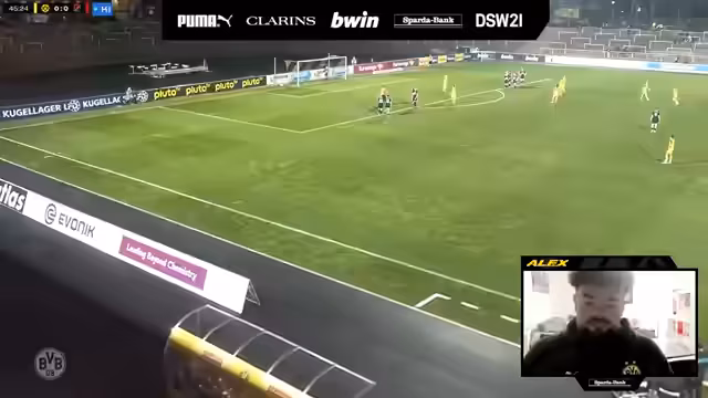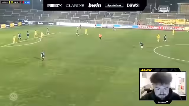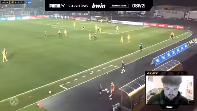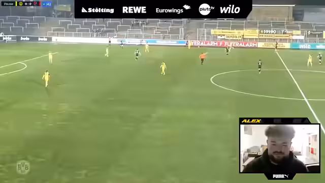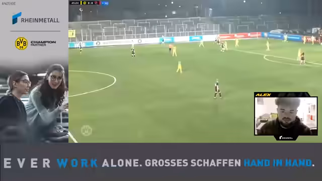 00:33:52Es wird eine intensive erste Halbzeitpause erwartet. Der Streamer kommentiert eine gute Hereingabe, die zu nah an die Torhüterin kommt. Er äußert die Meinung, dass der erste Platz unabhängig vom direkten Duell gegen Schalke entschieden wird und jedes Spiel mit vollem Einsatz gewonnen werden muss. Ein Abschluss von Lisa Gomulka wird als zu schwach bezeichnet. Germania verteidigt mit einem Abwehrriegel. Es wird eine neue Wette gestartet, ob vor der Halbzeit noch ein Tor für den BVB fällt. Der Streamer kündigt die morgige Übertragung der Infinity League an. Mia Böger holt einen Freistoß heraus, der aber nicht optimal genutzt wird. Marquardt erkämpft den Ball, und Enderler spielt in den Rückraum, aber der Schuss ist zu unplatziert. Kurz vor der Halbzeit fällt das 1:0 für den BVB durch Dana Marquardt nach einem Abstauber. Der Streamer gesteht, gegen ein Tor gewettet zu haben. Das Tor fällt in der 35. Spielminute, die KI-Anzeige ist weiterhin fehlerhaft. Es steht 1:0, und es sind ungefähr 37 Minuten gespielt.