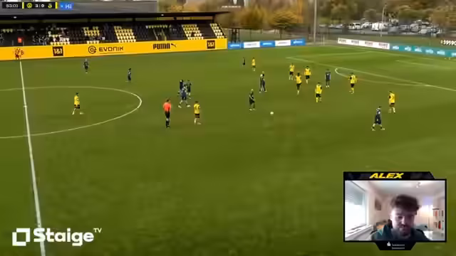 00:34:32Mathis Albert erzielt das 1:0 für den BVB nach einem herausragenden Pass aus dem Mittelfeld. Es ist sein zweiter Saisontreffer in der U19. Kurz darauf erhöht Diallo durch einen abgefälschten Schuss auf 2:0, wobei Albert abstaubt und seinen Doppelpack schnürt. Es wird die frühe Förderung junger Spieler im heutigen Fußball hervorgehoben und an Nuri Sahin erinnert, dessen Bundesliga-Debüt mit 16 Jahren eine Sensation war. Der Streamer teilt seine Erfahrungen mit dem BVB seit 2001 und erinnert sich an Spieler wie Dede, Koller und Rosicki. Er lobt die Flügelzange des BVB und Alberts Schuss. In der Halbzeitpause wird über verschiedene Fußballvereine diskutiert, darunter Rot-Weiß Essen, mit dem der Streamer sympathisiert, sowie Duisburg, Schalke, Kaiserslautern und 1860 München. Es wird die Bedeutung von Traditionsvereinen und Derbys hervorgehoben und die aktuelle Situation von Schalke in der zweiten Liga bedauert.