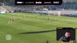 00:16:40Das Spiel beginnt und nach einer anfänglichen Abseitsposition etablieren sich die Gastgeber schnell im Spiel. Der BVB dominiert die Ballbesitzphase und erarbeitet sich Torchancen. Der Kommentator hebt die gute Organisation beider Teams hervor. In der 13. Spielminute erzielt Sarah Giebels das 1:0 für den BVB, nachdem eine Hereingabe eiskalt in das linke Toreck abgeschlossen wird. Das Tor wird gefeiert und die erste große Wette im Chat zum Tor bis zur 25. Minute ist damit erfolgreich.